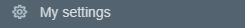 ![]() | My settings | N/A | Always | Menu item | String | Presents My Settings modal |