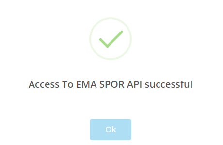 A modal will then appear informing the user whether their access to EMA SPOR API has been approved or denied.
