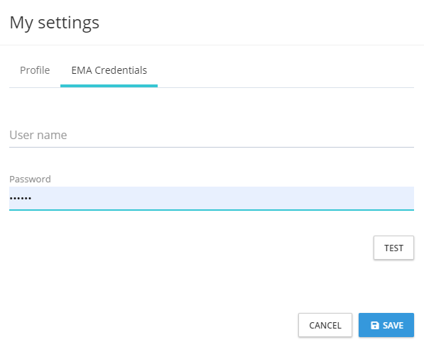![]() | User name | N/A | Always | Text field | String | Input EMA username |