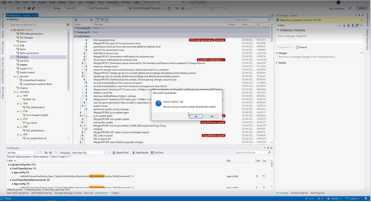 ![]() | Ensure the Master Branch is not missing relevant changes. In case of deviation, refer to the merge actions in SOP SOP - DEV-009/00 - Product Deploy. |