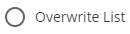 ![]() | Overwrite List | True | When Merge List is false | Radio button | Boolean | Deletes current list and replaces it with the selected list |