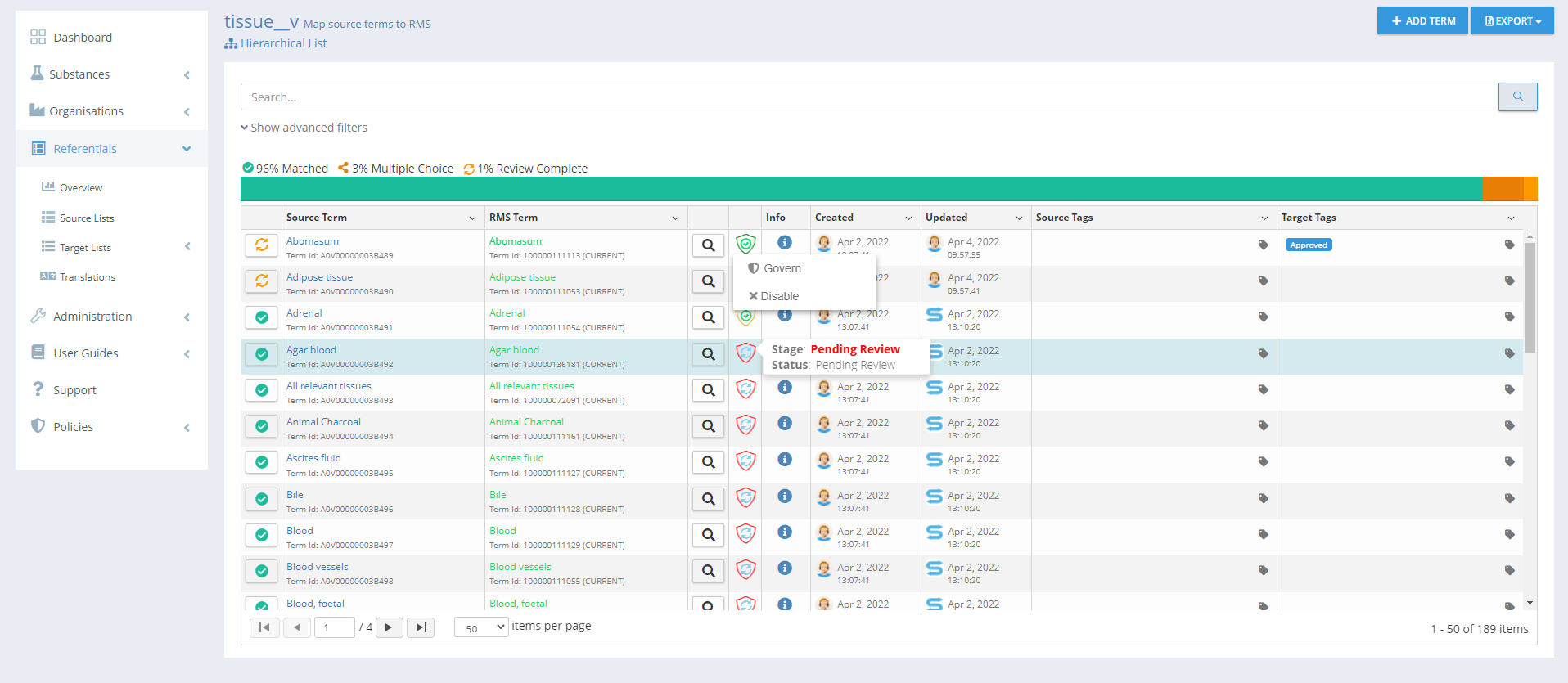 The purpose of these GUI elements is to enable the governance of Referentials records in SPORIFY.